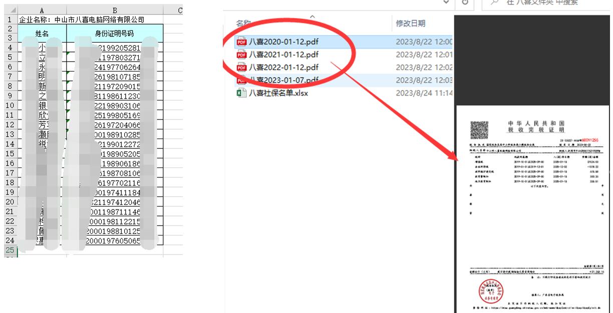 答:给20-23年买社保的员工姓名+身份证编号、完税证明。这些都是公开的个人信息,不涉及隐私。